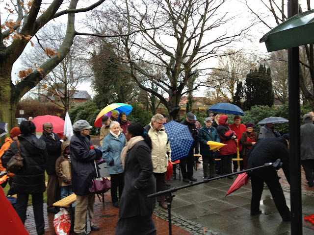 Beim Vater Unser öffneten sich die Schleusen des Himmels. Doch niemand ließ sich davon beirren. Bianca El Mabrouk unterstützte die besondere Stimmung durch ihren Gesang.