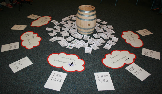 Auf der diesjährigen Gemeindefreizeit standen biblische Bilder im Mittelpunkt, mit denen die Bibel die Gemeinde beschreibt. Kreativ wurden diese den jeweils anderen Arbeitsgruppen vorgestellt.