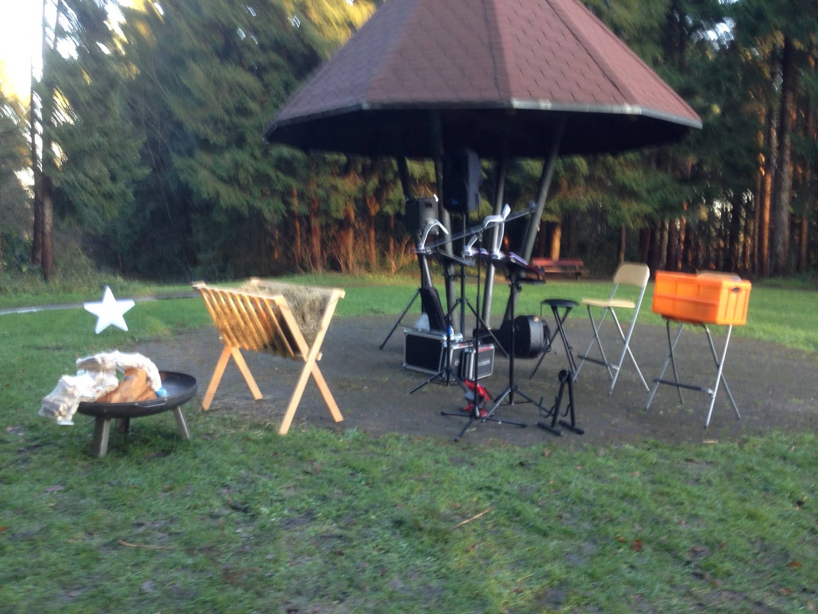 Wieder waren weit mehr als 100 Gäste beim Gottesdienst dabei. Vorne unsere neue Krippe – hinten unser neuer Catering-Anhänger |