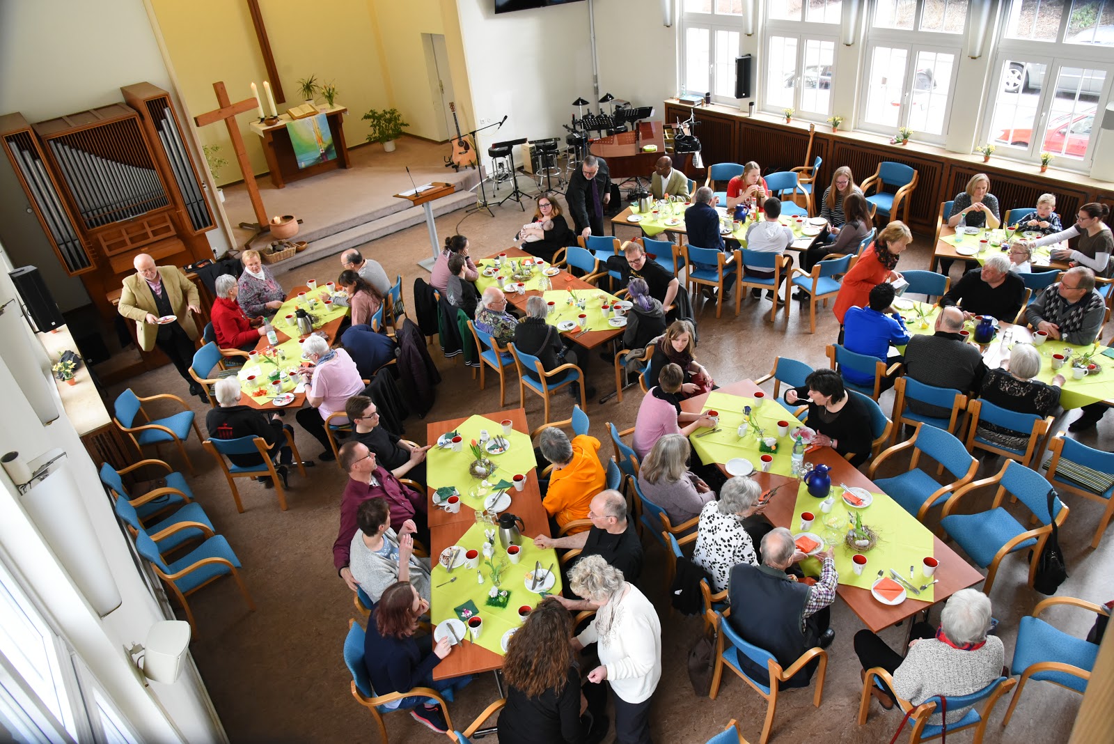 …waren Osterfrühstück und Ostergottesdienst in diesem Jahr. Alle haben so gerade in die Kirche gepasst, das Buffet bog sich vor lauter leckeren Sachen – und dann wurde gelobt und die Auferstehung gefeiert. 5x Ostern konkret – das war in diesem Jahr das Thema der Predigt.