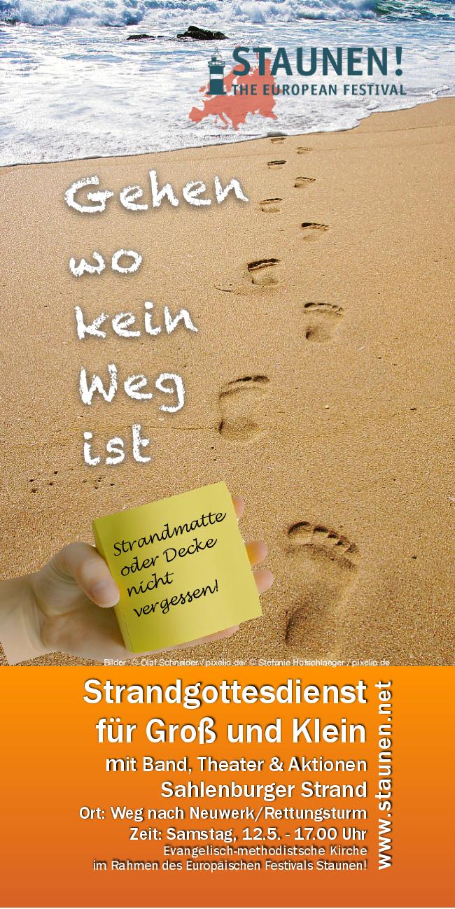 …wird am 12.5. am Sahlenburger Strand stattfinden. Im Rahmen von Staunen! – The European Festival gehen wir am Samstag-Nachmittag an den Strand. Zusammen mit den Gästen, die wir erwarten, hoffen wir die 1000 Teilnehmer-Marke zu knacken. Bist du dabei?