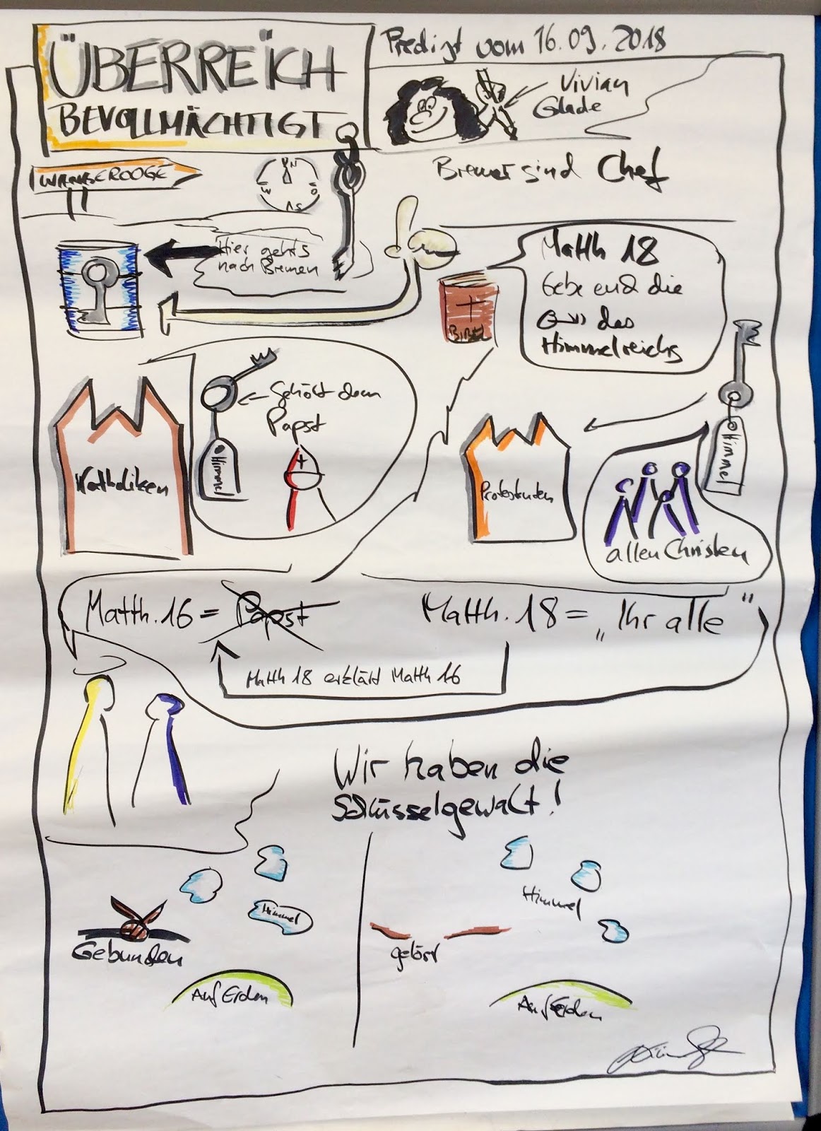 Während Christhard Elle predigte stand Vivian Glade an der Flipchart und malte live die Predigt mit. Eine ganz neue Erfahrung.