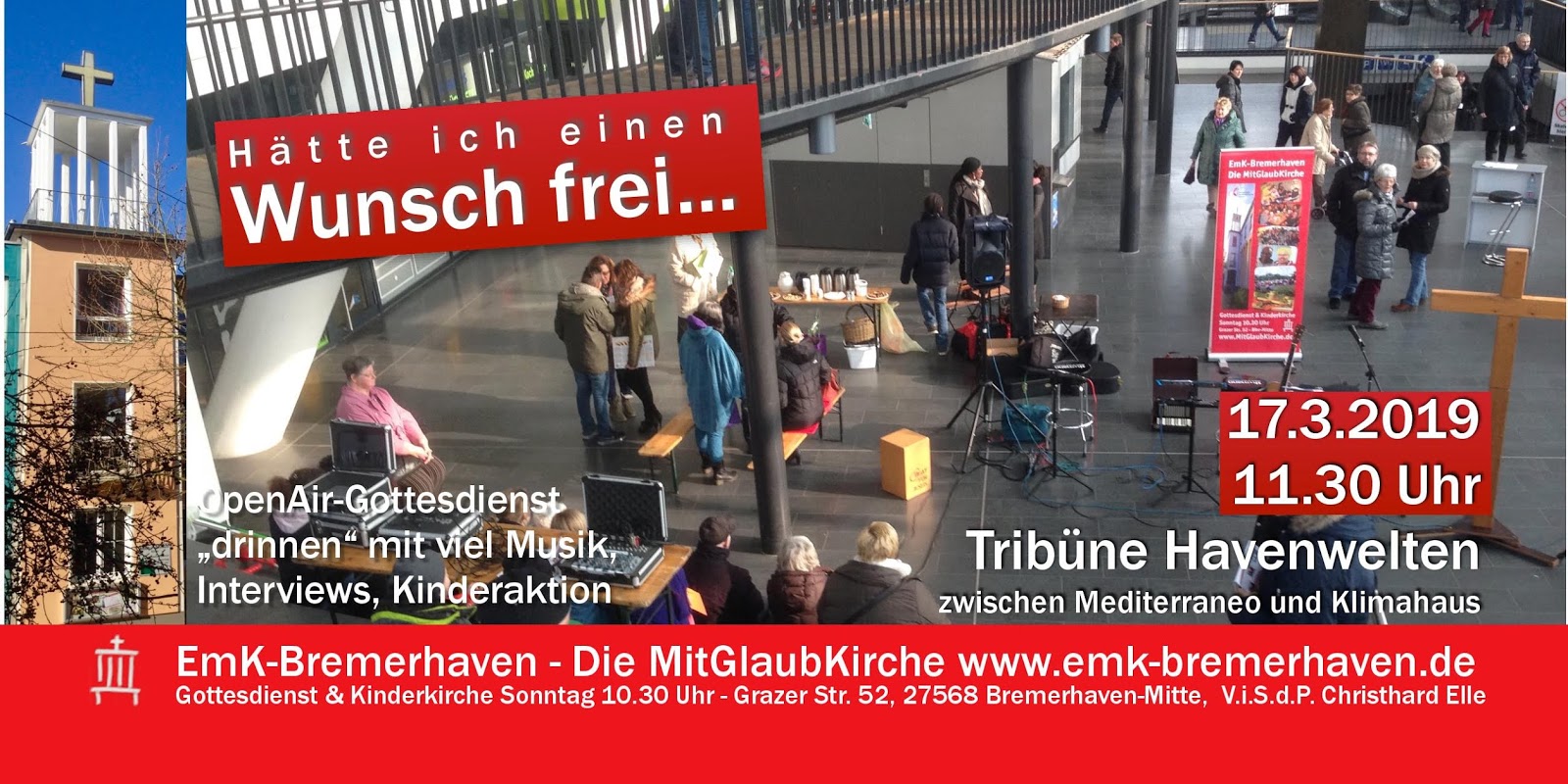 An der Tribüne der Havenwelten zwischen Mediterraneo und Klimahaus findet der nächste OpenAir-Gottesdienst statt. Herzlich willkommen!