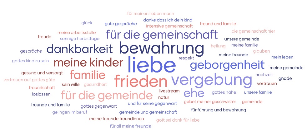 Das spannende ist, dass auch die auswärtigen Gottesdienstbesucher mitmachen können. So haben wir zum Erntedankfest wieder eine gemeinsame Danke-Wand erstellt.
